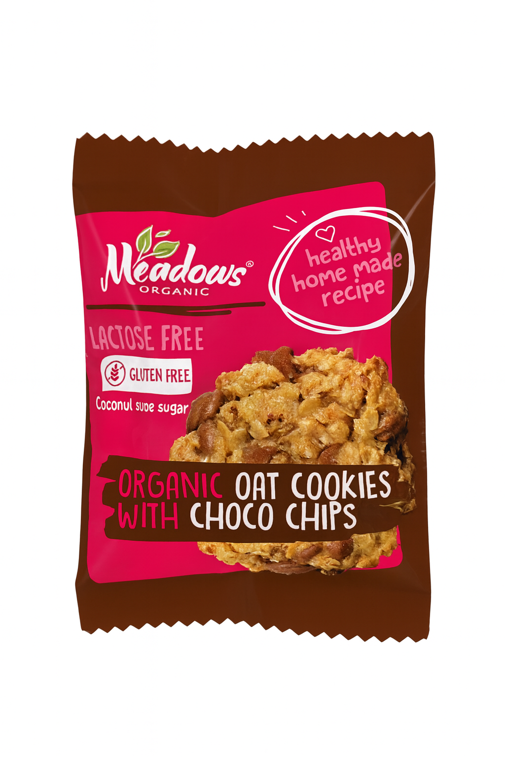 Meadows’ Organic Gluten-Free & Lactose-Free Oat Cookies are crafted from clean, natural ingredients like organic coconut sugar, organic vegetable fats, and rich organic chocolate chips. A light crunch with a wholesome flavor, perfect for anyone looking for a healthier sweet snack.